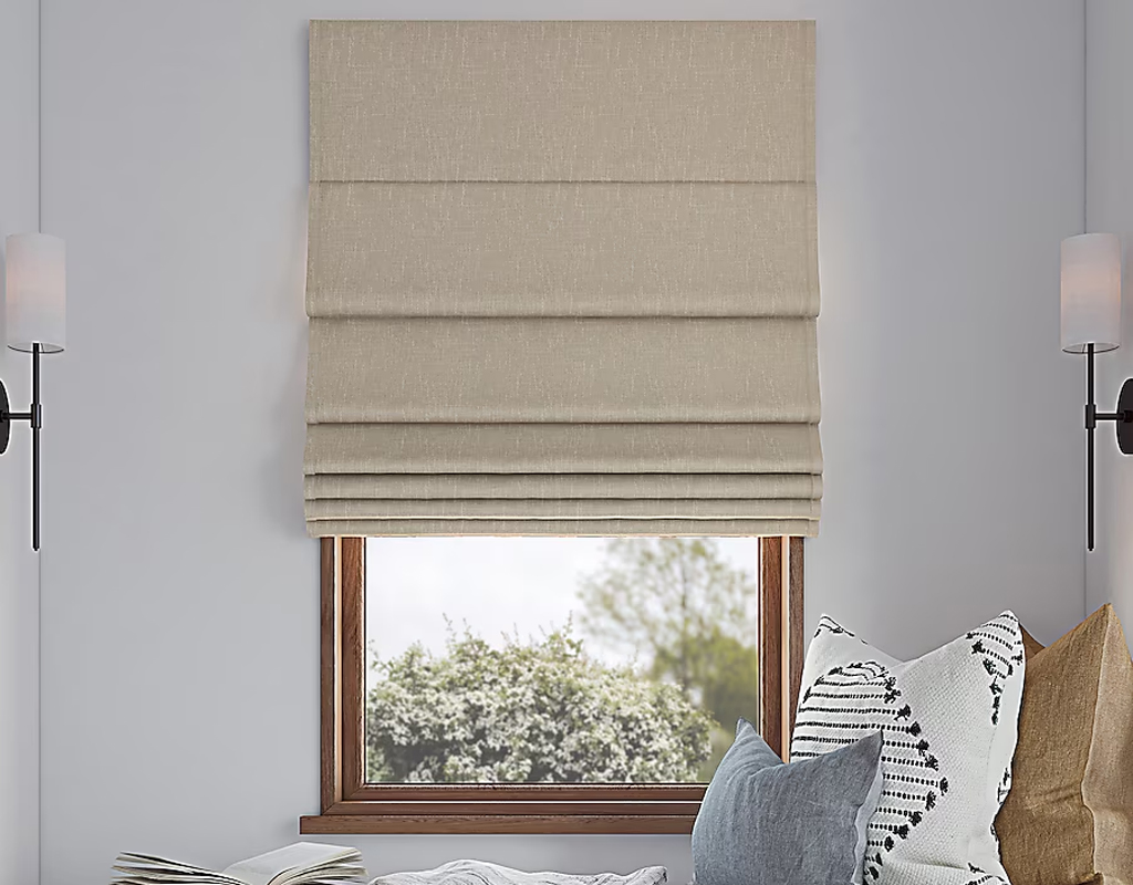 Roman shades blend blinds and curtains stylishly, providing the best of both worlds for any window. Choose from diverse lifting options and fabric selections to enhance your space and match your style.